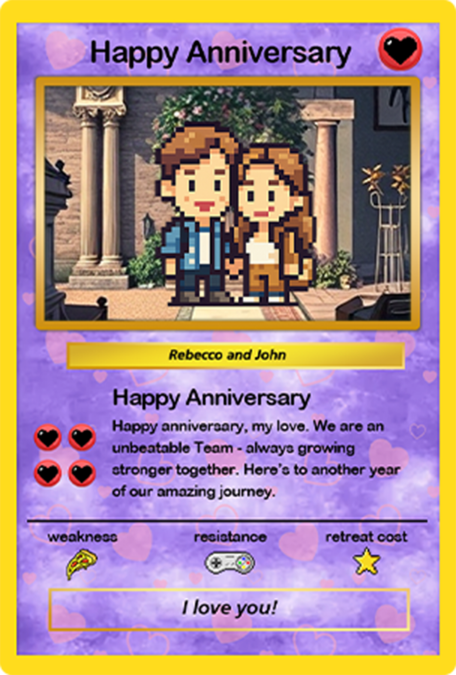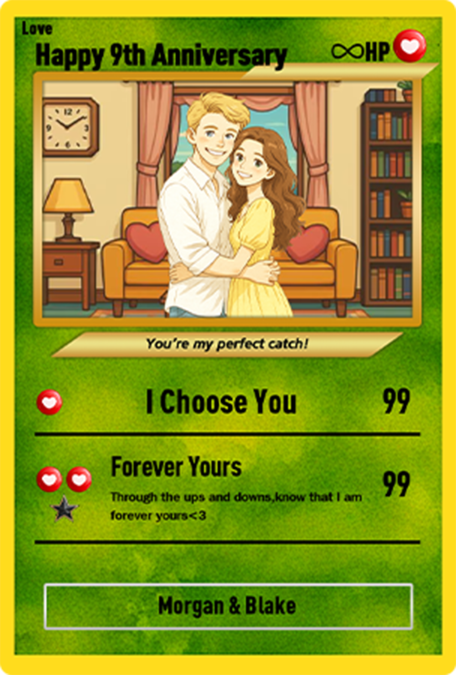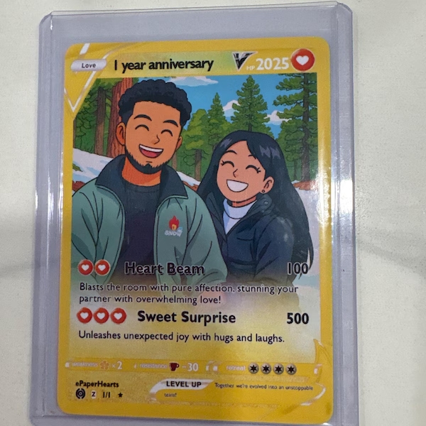 “I ordered a custom card for my boyfriend and it turned out way better than expected. The character design actually looks like him and the stats are hilarious. He said it’s the coolest gift he’s ever received.”