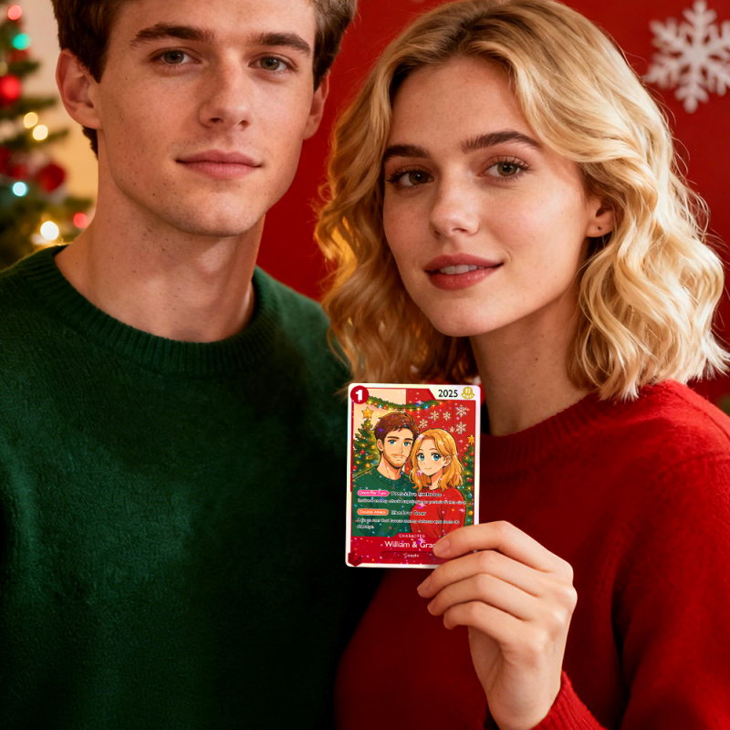 Our Custom Anime Couple TCG Card transforms you and your partner into collectible trading card characters - complete with custom portraits, names, and fun "power stats." Designed in a Japanese-inspired layout, this card makes a fun, heartfelt, and geeky gift for anime-loving couples.