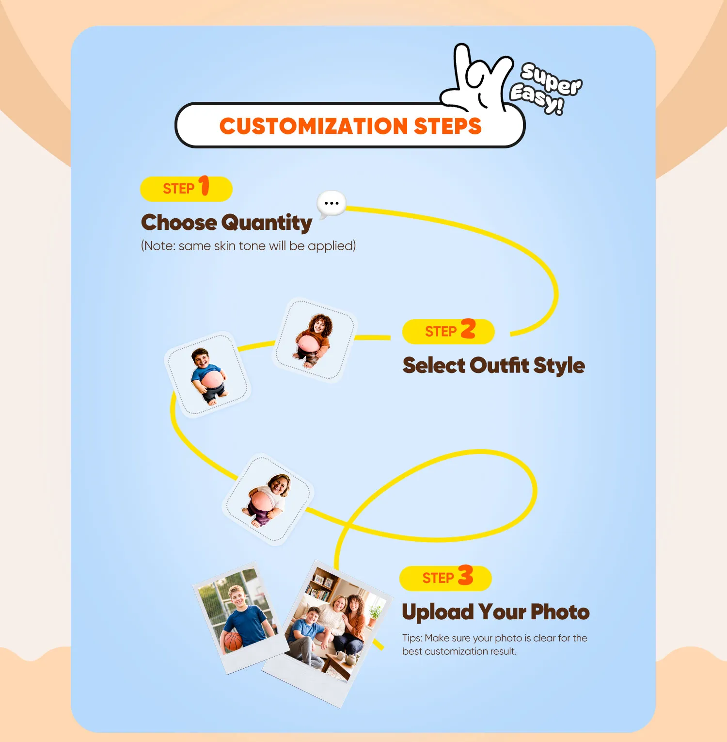 Upload any photo and we’ll turn it into a fun, personalized character.
