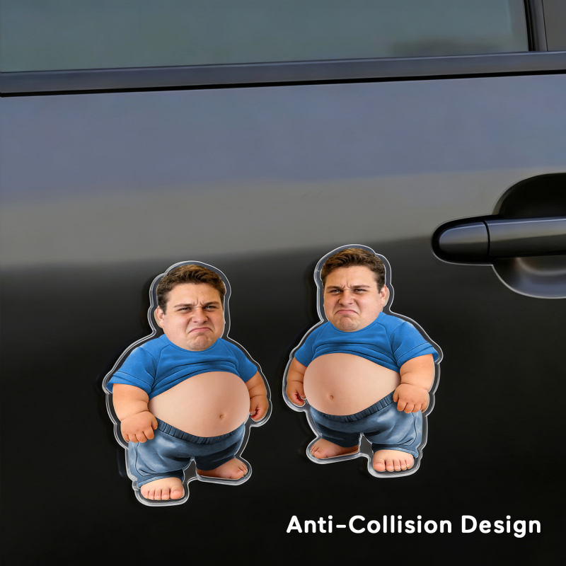 This custom face squishy belly car stickers lets you upload a photo, crop the face, and turn it into an adorable character with a soft, squeezable belly.