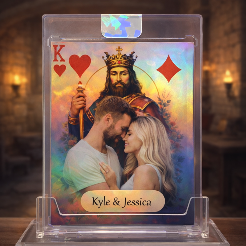 This Personalized Couple Card transforms your image into a premium, rainbow-finish display piece, sealed inside a clear protective case for long-term preservation.